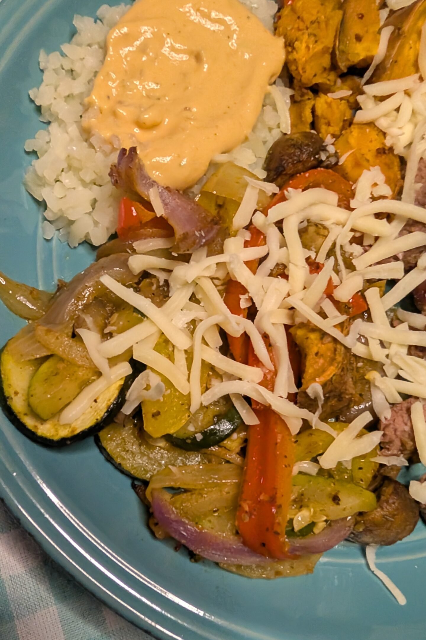 I love that you can customize this bowl according to your own taste preference or what you have on hand. I love mushrooms and zucchini but you can skip it and add more peppers instead!